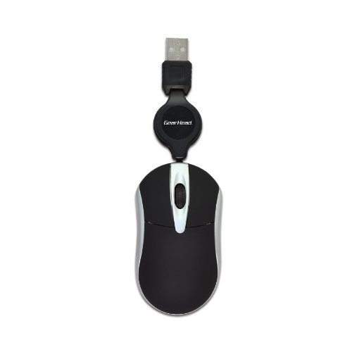 -. Title : Gear Head USB 2.0 Optical Retractable Mobile Mouse, Black/Silver (MP1550RU)