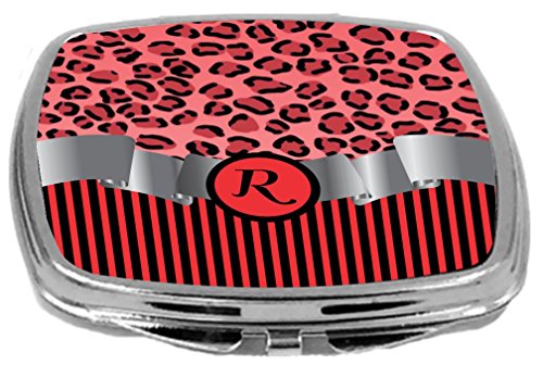 Rikki Knight Compact Mirror, Letter r Initial Red Leopard Print and Stripes