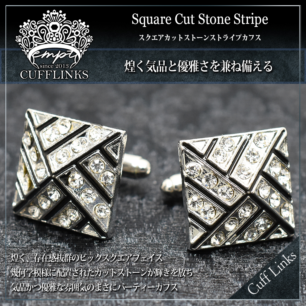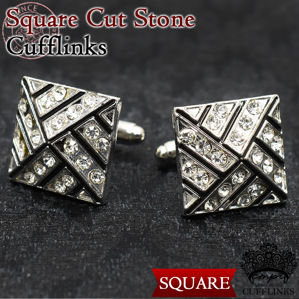 ■ 商品名 : カフス スクエア 幾何学模様 ストーン カフスボタン
