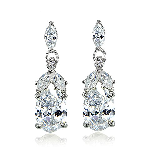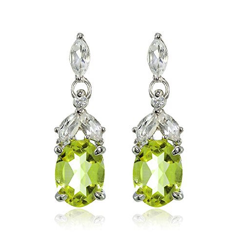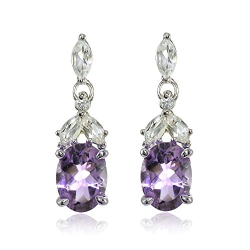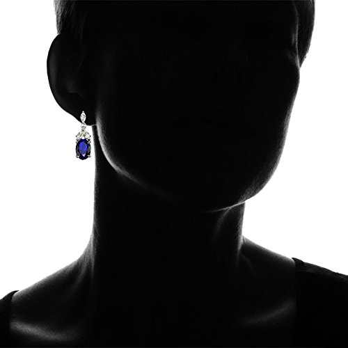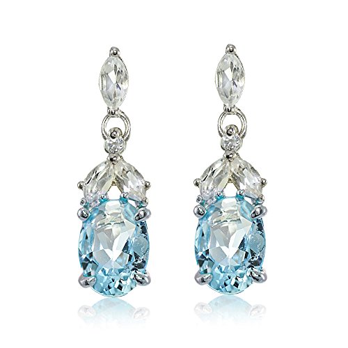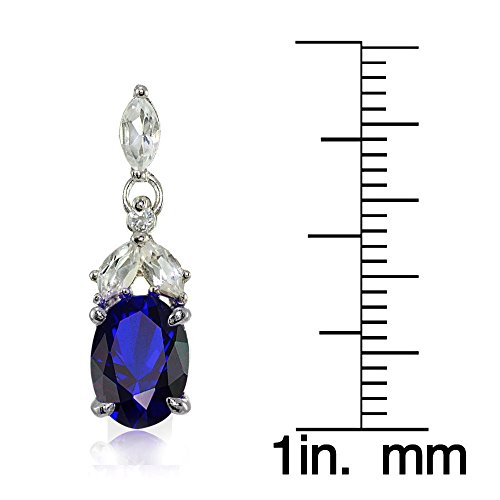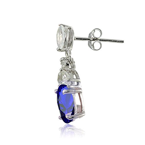 These highly detailed gemstone earrings add both elegance and contemporary style to any look. Each of these earrings feature a created blue sapphire oval gemstone dropping from an array of marquise shaped white topaz gemstones. The earrings are crafted of fine sterling silver and secured by post with friction backs.