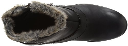 Product DescriptionAnkle boot with faux fur lined shaft and footbed, multi strap upper with metal buckle closure, gusseted shaft opening with zipper pull, and flexible tpr unit bottom.0