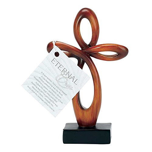 Open Heart Eternal Woodgrain Carved Brown 6 Inch Resin Tabletop Cross