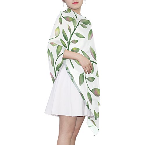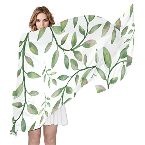 (ALAZA)/Accessories/Cold Weather Accessories/DIRECT FROM USA/Cooper girl Watercolor Green Leaves Silk Scarf Shawl Wrap for Women Girls