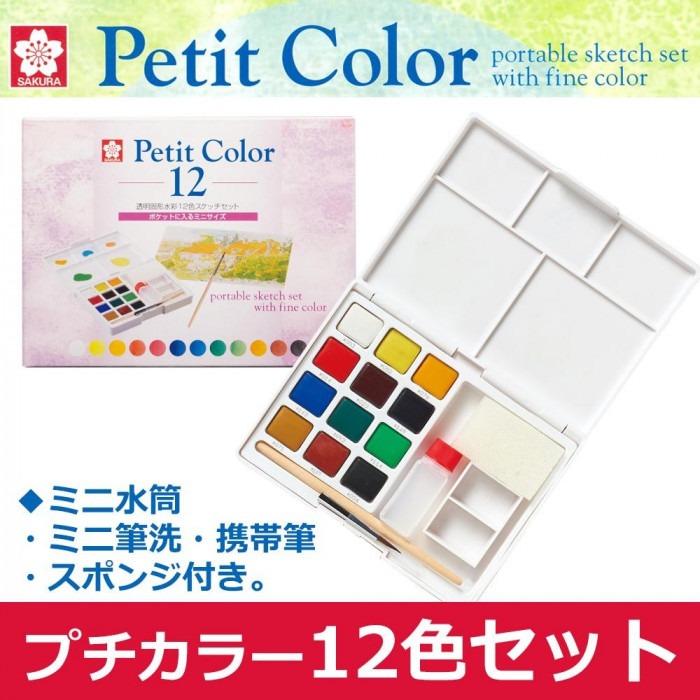 | 発色に優れた固形水彩絵の具12色がセットになりました。携帯に便利なポケットサイズのプチカラーシリーズです。 |