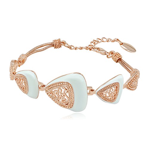-. Title : Kemstone Rose Gold Plated Filigree White Plated Adjustable Chain Link Bracelets for Womens Gift,7.68"