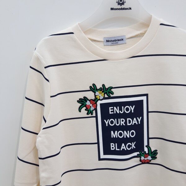 꽃 자수 포인트 맨투맨 티