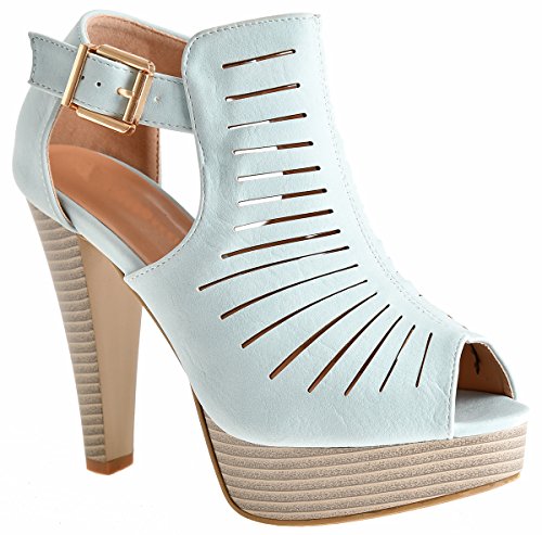 -. Title : Top Moda Table-1 Women's peep toe platform chunky heel closed back buckle T-strap nubuck pumps