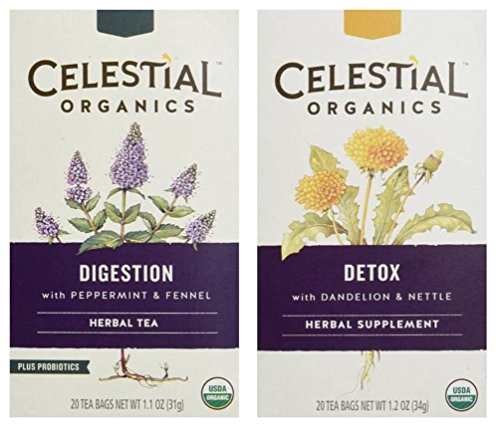 -. Title : Celestial Organics Caffeine Free Gluten Free Herbal Tea 2 Flavor Variety Bundle: (1) Organic Detox Tea, and (1) Organic Digestion Tea, (20 Count Ea.)