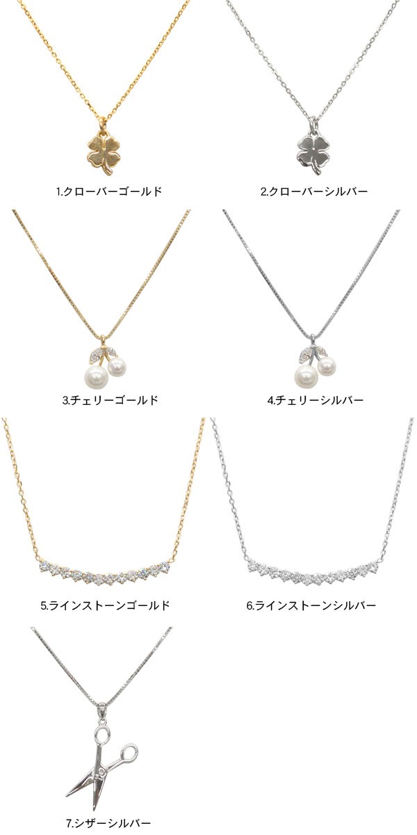 | サイズ | - | | 実寸 | 全長 クローバー:42cm チェリー:42cm ラインストーン:44.5cm シザー:42cm | | 素材 | S925/合金 | | 生産国 | 中国 | | 裏地 | なし | | 生地の伸縮 | なし | | 生地の透け感 | なし | | カラー | 01. クローバーゴールド 02. クローバーシルバー 03. チェリーゴールド 04. チェリーシルバー 05. ラインストーンゴールド 06. ラインストーンシルバー 07. シザーシルバー | | 注意点 | ▼綿混合商品は洗濯時に多少縮む事がございます。 ▼パソコン、モニター等の環境により、実際の商品素材カラーが多少異なる場合が御座います。予めご了承ください。 ▼お手数ですが必ずお買い物ガイドを一読頂いてからご利用いただきますようお願い申し上げます。 | |