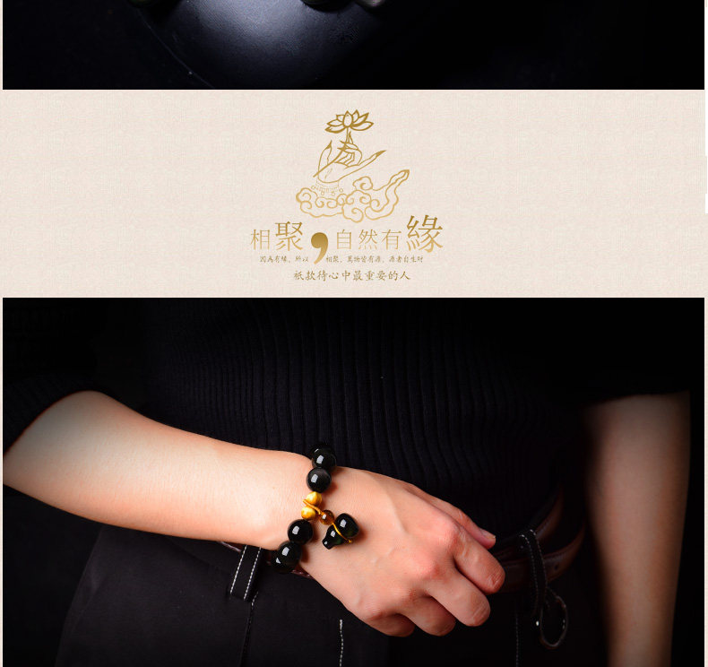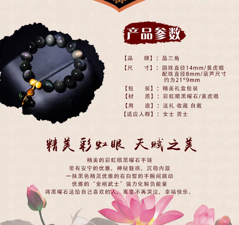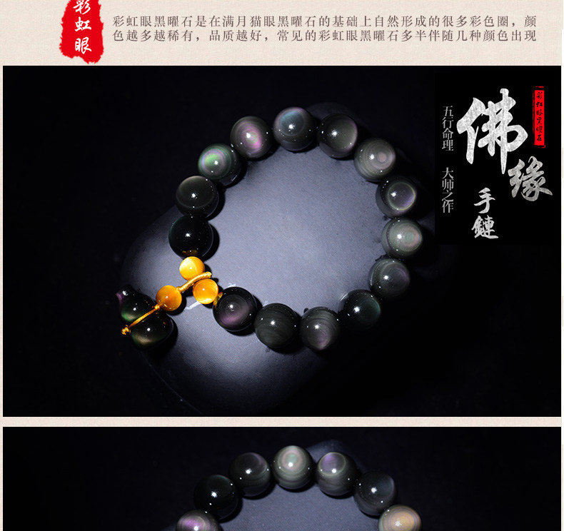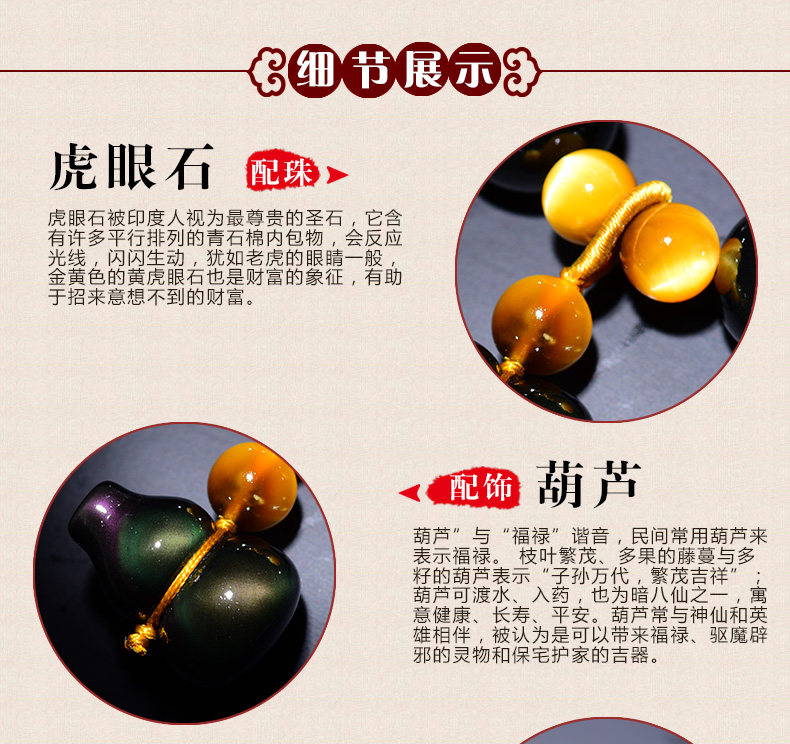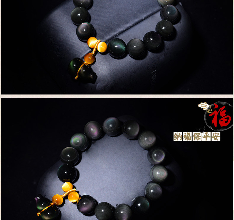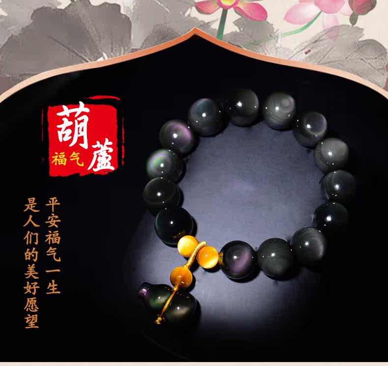 开光彩眼黑曜石葫芦手链男士女款情侣转运虎眼石佛珠手串饰品礼物