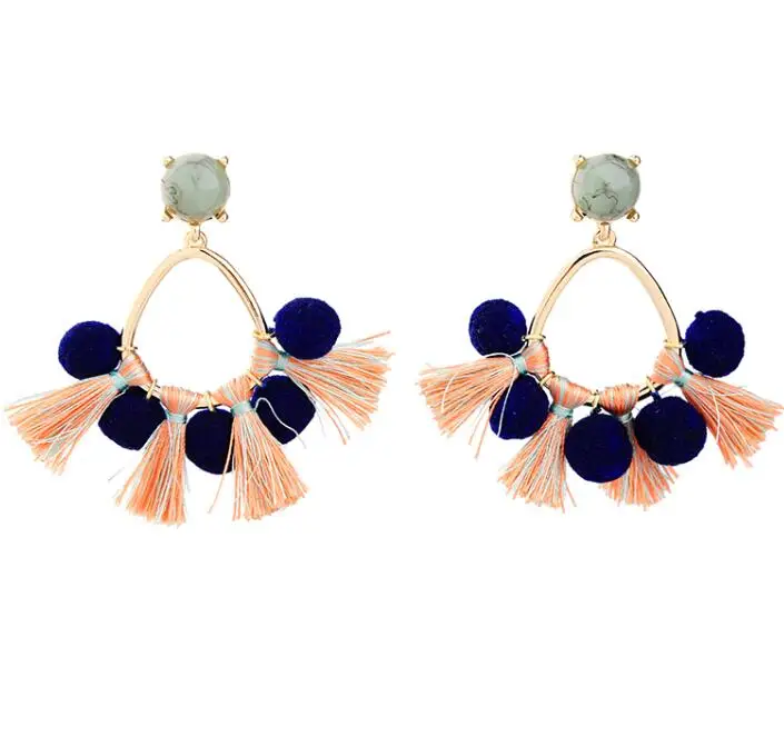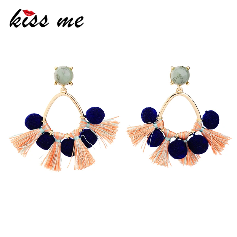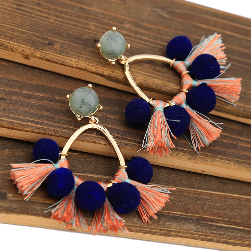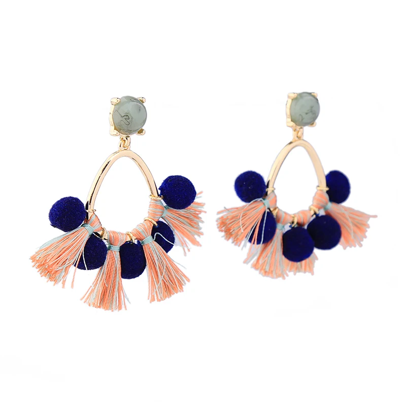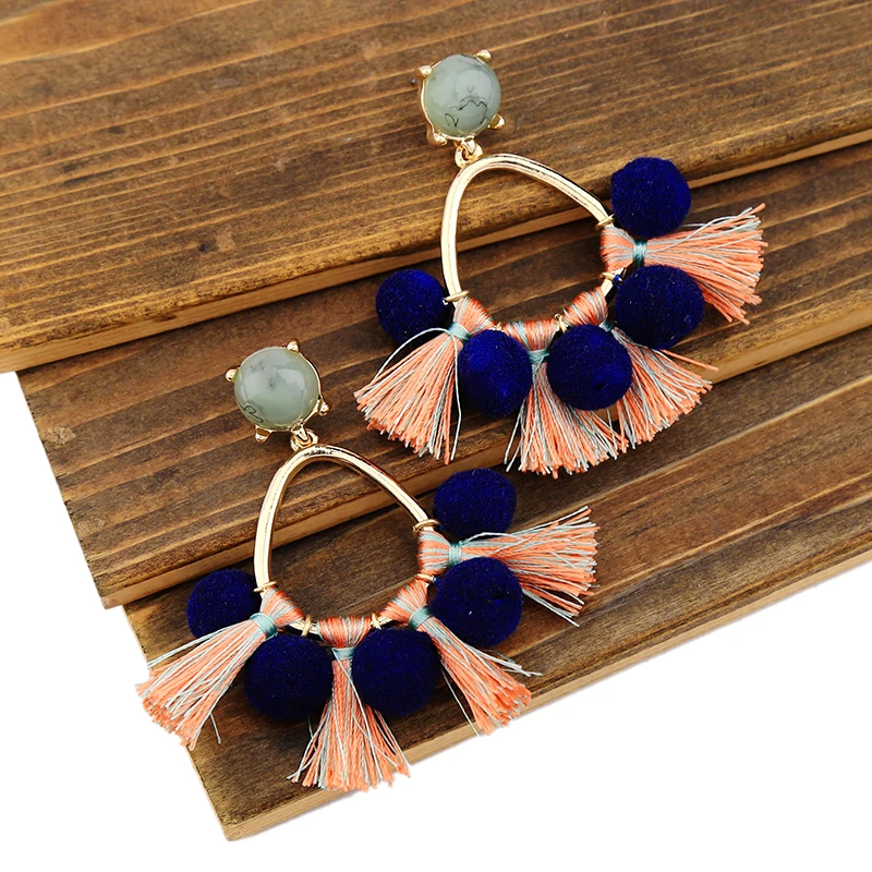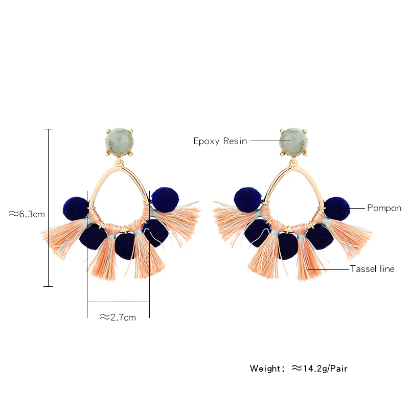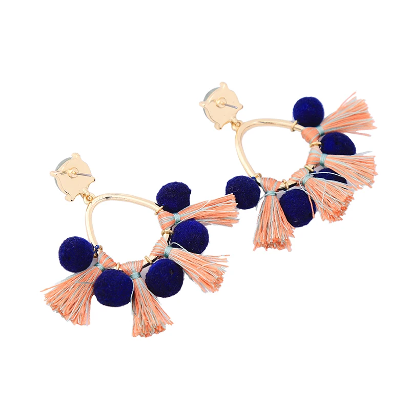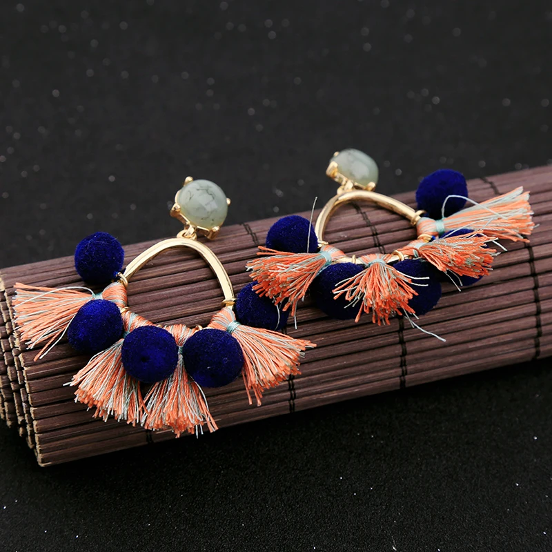 Production name ::KISS ME Boho Blue POM POM Ball Colorful Rope Tassel Earrings