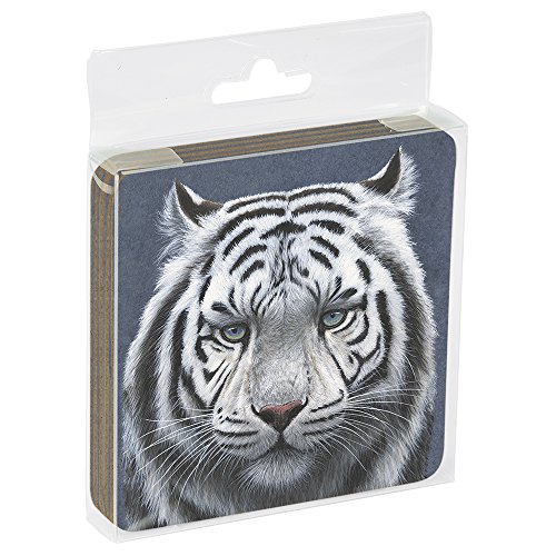 Tree-Free Greetings ECO Coasters Box Set of 4 Drink Coasters, 3.5 x 3.5 Inch, Siberian White Tiger (EC96928)