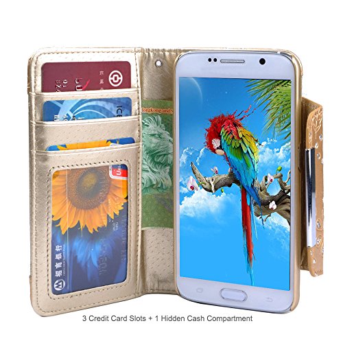UNIQUE DESIGN - Sparkle flowers and embossed leaf on the leather provide unique and stylish designs; 3 Card Slots for credit card, ID card or your favorate photo, 1 money pocket for cash.