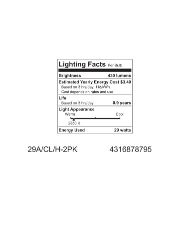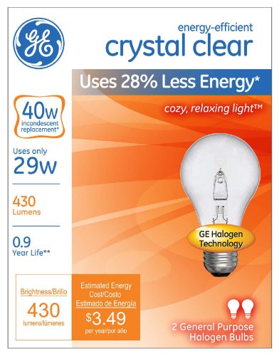GE Lighting 78795 Energy-Efficient Crystal Clear 29-Watt (40-watt replacement) 430-Lumen A19 Light Bulb with Medium Base, 2-Pack