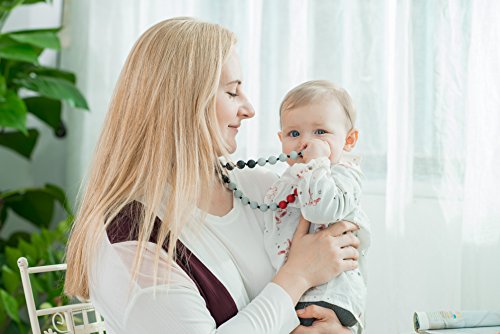 CONVENIENT AND NEVER FALL OFF-It is very convenient for you to just wear this necklace and let your baby chew it while you are carrying baby. At the same time, the necklace stays on your neck securely and it never fall off.