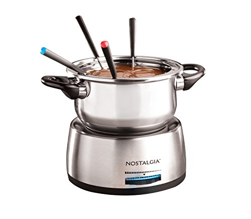 Bring guests together in a fun and stylish way to serve hors d'oeuvres, entrées and desserts. Make delectable cheese dips for bits of bread and fruit or try decadent chocolate dessert fondues. Creatively and communally cook morsels of meat and seafood in a variety of oils and broths. The color coded forks make it easy for guests to serve themselves. The unit features an adjustable temperature control, 6 color-coded fondue forks and support ring.Feature