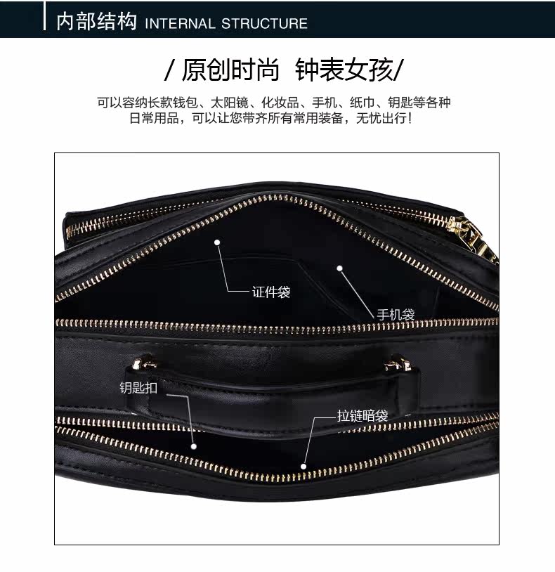 Internal structure: zipper pocket cell phone pocket card slots document bag