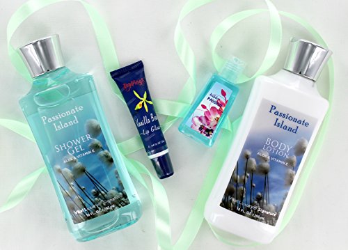 - Body Lotion: Passionate Island body lotion infused with Vitamin E, Aloe, and skin-softening Shea Butter, this formula soften dry rough skin and delivers long-lasting moisturizing.
