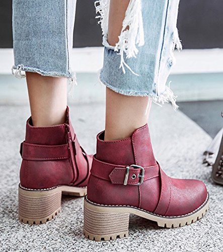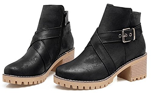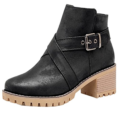 Binding : Apparel Product Description This pair of shoes is for women, girls, juniors and young ladies. You will look chic and stylish when wearing them. The heels measure 2.4 inches. You will feel comfy in their mid heels. This pair of shoes features ankle high and solid pu leather upper. You will look cute in their round toe design. The decoration of belt buckles will offer you a chic look. It's convenient for you to wear in their inside zipper closure design. The sole is made of good rubber. You will feel comfortable in their soft bottom. You can wear them to the office, school and shopping mall. They are of high quality and durable. We promise we will provide our customer with the best quality and lowest price. Your pleasant shopping experience is our eternal pursuit. Waiting for your coming! 0