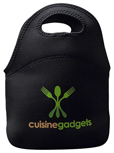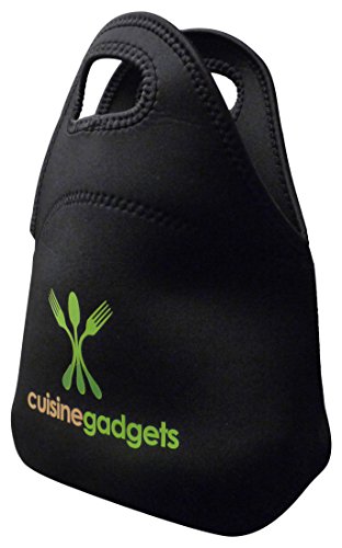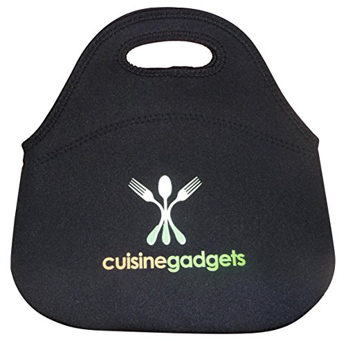 -. Brand : CuisineGadgets -. Color : Black -. EAN : 0646437466615 -. Feature : IDEAL FOR HEALTHY EATING - Can be used for warm or cold foods: fruits, vegetables, drinks, sandwiches and even some dairy; this Lunch Bag is insulated so keeps the desired thermal temperature for longer / QUALITY MATERIAL EASY TO CLEAN AND STORE - Made of neoprene, same as wetsuits, for added insulation. Vinyl and PVC free. Any spills can be wiped clean and the lunch box can even be hand washed and drip dried / DIMENSIONS - 12"L x 12"H x 6.5"W. The neoprene is expandable can stretch to fit even more and the sturdy zipper keeps everything secure. Can be folded away for storage / FASHIONABLE AND PRACTICAL - Small enough to go unnoticed and yet very practical for kids at School, Sport , Gym, Work snacks and lunches; is reusable time and again / 100% SATISFACTION GUARANTEE - Order now and enjoy a 100% money back or replacement guarantee -. Model : CGLB1815 -. ProductGroup : Kitchen -. ProductTypeName : KITCHEN -. Size : 12L x 12H x 6.5W inches -. Title : Neoprene Lunch Bag by CuisineGadgets - Tote Bag Black [12L x 12H x 6.5W] Durable Expandable Bag for Kids and Adults - Reusable Insulated with Zipper to Keep Desired Thermal Temperature for Longer -. UPC : 646437466615