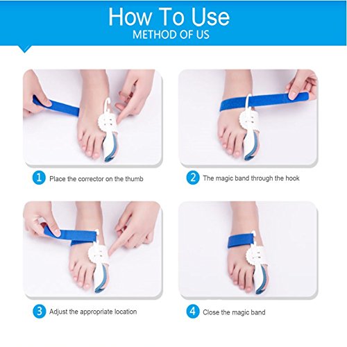 About Us H-Brotaco is an athletic brand rooted in fitness and fashion, inspired by art, music and color. As a team, we are focused on delivering products and service purposed to build on the idea of better living through convenience, enhanced experiences, responsive customer care and affordability.? Customer Service 30-day money-back guarantee for any reason? If for ANY reason you are not fully satisfied with your purchase experience within 30 days, we are happy to help with a replacement or refund... Feature: Effective in Hallux Valgus and Bunion Pain. Helps stabilizing arches and pulling big toe from the second toe. Relieve pain and prevent it from happening by forcing proper toe alignment. ? The Best Adjustable Bunion Corrector Set The bunion splint is an orthotic device for improving your toes health. The bunion splint is the best available type of bunion corrector. Ergonomic design with proper curves to provide you the most comfort. Bunion Regulator with Adjustable tension helps alignment by stretching tight tendons and toe muscles while you sleep. Just slip on the plastic brace, adjust the comfy foam pad and secure the Velcro strap and feel sweet relief. It is the best toe straightener and most comfortable hallux valgus treatment splint you can use at home and in sleeping time. ? Efficacious Big Toe Strap Bunion Straightener Stretch big toes movement with Self-control strength to relieve the big toes of the lateral strain meanwhile prevents damage to the toe joint. ? How to Use: 1. Release the velcro strap and apply it on the big toe. 2. Draw the velcro beneath of the foot and across the foot dorsum, make the velcro pass through the slit of the plastic claps. 3. Tighten the velcro and secure it until the big toes appears to the correctly positioned. 0 |