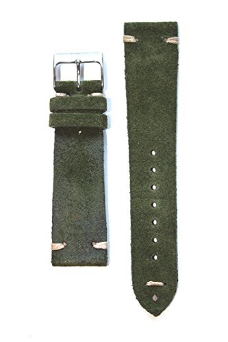 -. Title : VINTAGE Military Green Genuine Suede Leather Watchband Made in Italy 20mm with S/S Buckle and Suede Lining