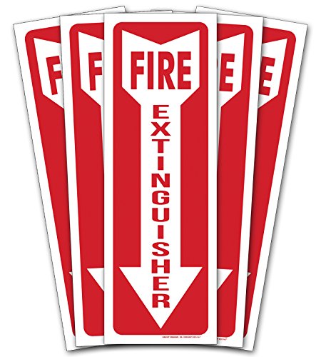 (Set of 5) Fire Extinguisher Sign - 4" x 12" 4 Mil Vinyl - LAMINATED For Ultimate Protection & Durability - Self Adhesive Decal - UV Protected & Weatherproof - Heavy Duty