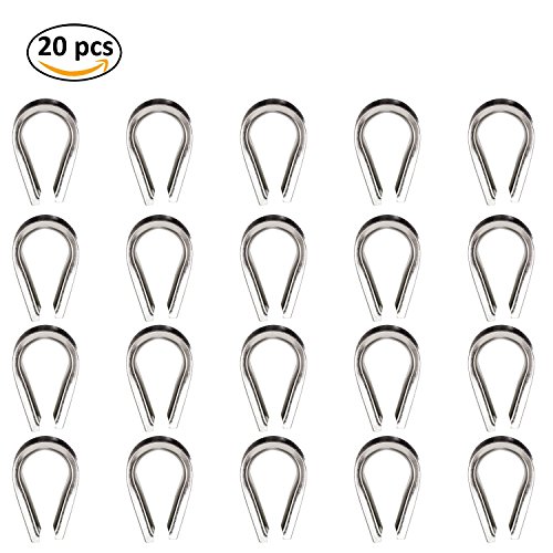 M5 304 Stainless Steel 5/32" - 3/16" Diameter Wire Rope Cable Thimbles Rigging, 20 Pcs