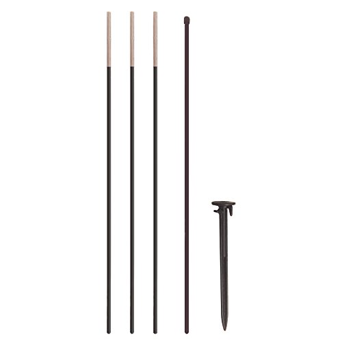 - Included are four fiberglass poles that connect with metal couplers. The pole extends to 90 inches tall. A ground stake is included.