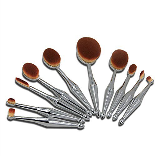 -. Title : Kuulee New 10Pcs Toothbrush Oval Silver Mermaid Shape Makeup Brush Foundation Powder Eyebrow Make up Brushes Beauty Tools