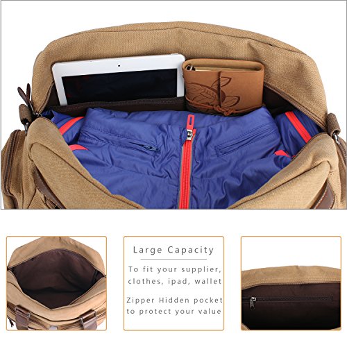 Light Weight Canvas Leather Travel Duffel Bag Overnight Single-shoulder Bag Coffee