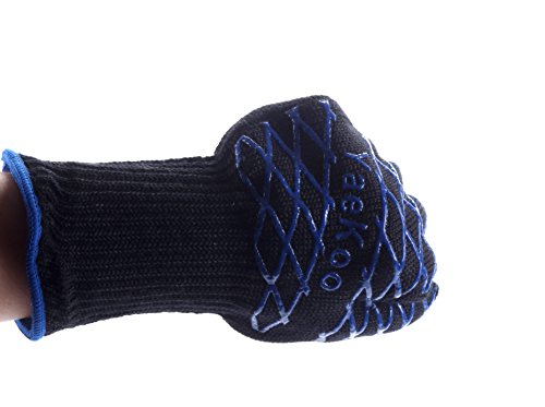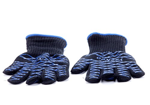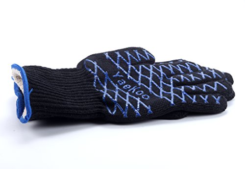 YaeKoo Pair of Extreme Heat Resistant Oven Gloves, BBQ Gloves With No-Slip Silicone Grips, Oven Mitts, FirePlace Gloves, Pot Holders - Excellent For Grilling, Baking, Cooking, Camping