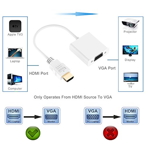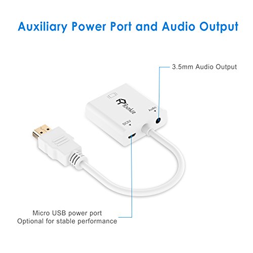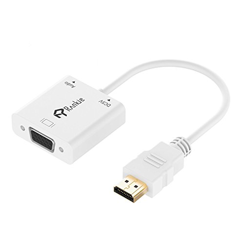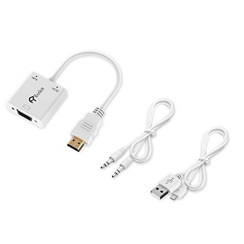 HDMI to VGA, 1080P with Audio Port, Rankie Gold-Plated Active HDMI HDTV to VGA Adapter Converter Male to Female with Micro USB & 3.5mm Audio Port Cable (White) - R1150B