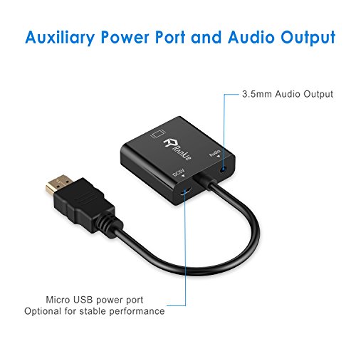 HDMI to VGA, 1080P with Audio Port, Rankie Gold-Plated Active HDMI HDTV to VGA Adapter Converter Male to Female with Micro USB & 3.5mm Audio Port Cable - R1150