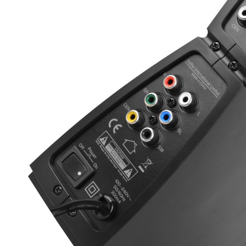 Ausgangsleistung (RMS): Subwoofer 38W, Satelliten 4x 8W, Center-Lautsprecher 1x 10W, Bassreflexkanal an der Subwoofer-Ruckseite fur satte Basswiedergabe