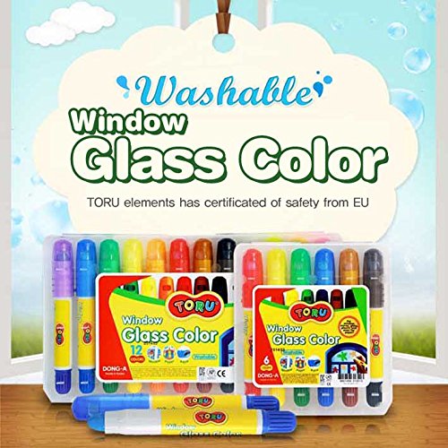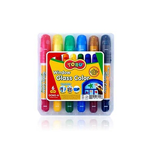 Dong-a Toru Window Glass 6 Color Crayon Marker for Window, Mirror, Glass, Plastic