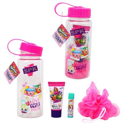 Shopkins Water Bottles With Lip Blam & Shower Gel Bath Set