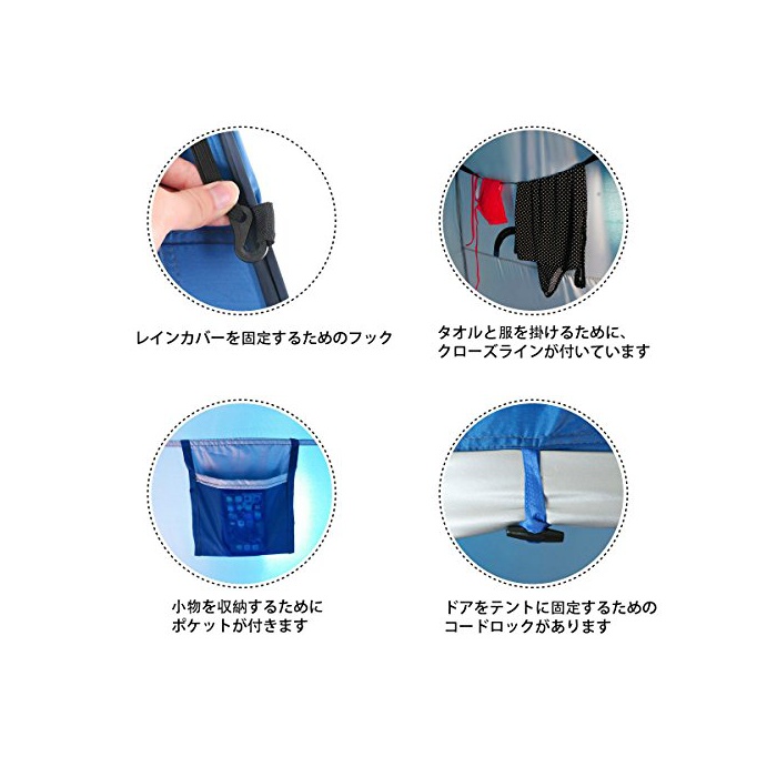 혁신 적인 설계-옷을 변경하고, 샤워 및 화장실로서 이용 할 수 있는 것 프라이빗 장소가 좋겠습니다인지(든가)?지금이라면 할 수 있는,Leapair 텐트는 자신의 프라이빗 장소를 만듭니다.Leapair텐트는 데《라스치루》를 구성합니다.데《라스치루》는 장기 적인 사용과 내후성이 있기 때문에 임의의 기상 상황에서도 장기 적인 사용 를 할 수 있습니다.떼내어 가능한상 설계에 방의 청결을 유지합니다.지붕에서 메쉬 딸린 환기구는 공기의 순환을 촉진합니다.텐트내는 편리 때문에 크로우즈 라인과 수납 가방을 첨부 됩니다.
