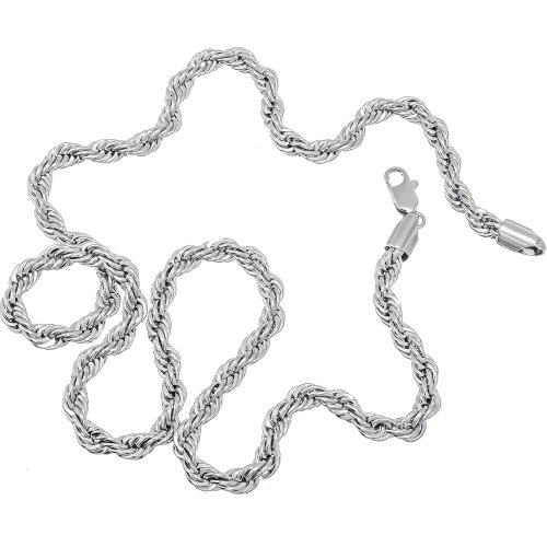 - Title : 5MM Thick - 18 Inch - 14k Heavy White Gold Plated Rope Chain Necklace - Lifetime Warranty