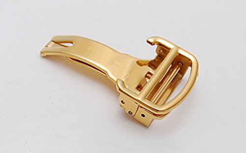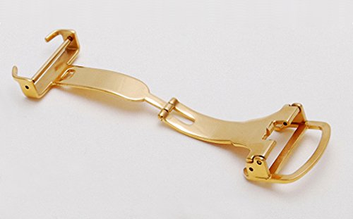 - Title : Uyoung 14mm Stainless Steel Polished Gold Deployment Clasp for Thin no Hole Leather Watch band