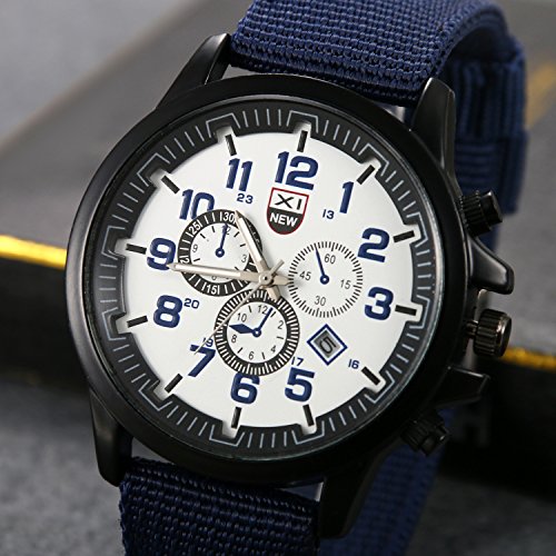 -. Title : Lancardo 腕時計 メンズ アナログ カレンダー付き 防水 クオーツ シンプル ナイロンベルト カジュアル アンティーク風 誕生日 新年 クリスマス プレセット ホワイト