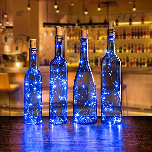 Bottle Lights, 4PCS/SET Cork Shape Lights 75cm/30inch Copper Wire Light Starry Light For Christmas Wedding and Party Halloween Decoration - Blue