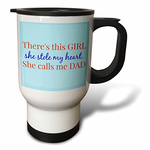 3dRose tm_224383_1 There's This Girl, She Stole My Heart, She Calls Me Dad, Blue Back Travel Mug, 14 oz, White