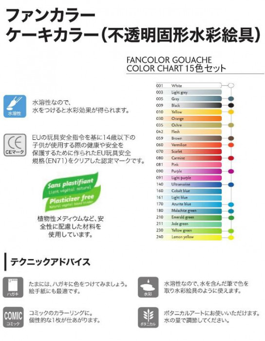 | 仕様 | 不透明固形水彩絵具 |