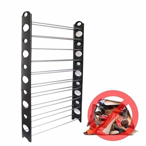 -. Binding : Kitchen -. Brand : Unbranded* -. Color : AS PICTURED -. EAN : 0742574039986 -. Feature : ♥ Unlike ordinary shoe racks, this creative shoe rack has no height limit ♥ Different holes on both sides are convenient for you to adjust the distance between pipes, so as to accommodate different kinds of shoes ♥ Excellent for your long-lasting use, the tough materials offer the best bearing capacity / ♥ To our surP.R.Ise, it can hold up to 50 pairs of shoes ♥ It is easy to install and clean ♥ Keep your shoes well-ventilated / ♥ Material Stainless Steel & Plastic ♥ Color Black & Silver ♥ Weight 87.13oz / 2470g / ♥ Dimensions (60.62 x 38.19 x 7.48)" / (154 x 97 x 19)cm (L x W x H) / ♥ Package Includes 10 x Mosaic Plastic Panels ♥ 20 x Steel Tubes -. IsAutographed : 0 -. Label : NOT APPLICABLE -. Manufacturer : NOT APPLICABLE -. ProductGroup : Home -. ProductTypeName : HOME -. Publisher : NOT APPLICABLE -. Size : NOT APPLICABLE -. Studio : NOT APPLICABLE -. Title : 10-Tie Shoe Rack for 50 Pair Wall Bench Shelf Closet Organizer Storage Box Stand -. UPC : 742574039986