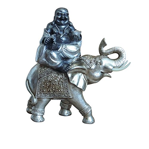 - Beautiful Happy Buddha sitting on Elephant with trunk up for good luck
