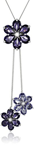 Sterling Silver Purple, Tanzanite Crystal and Cubic Zirconia Flower Pendant Necklace, 18"