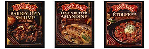 -. Feature : Cajun King Seafood Seasonings helps you create the elegant seafood dishes at home that you have always enjoyed in restaurants, even if you don't know how to cook fish. / Pre-measured packets allow you to create many fish entrées in minutes. / Set includes: Lemon Butter Amandine, Barbecued Shrimp, Étouffée. / Sold by the pack of 3.