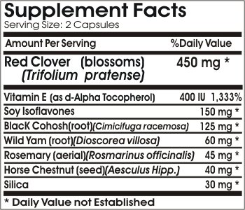 Studio : PureControl Supplements Publisher : PureControl Supplements Binding : Health and Beauty Product Description Red Clover is a natural source of plant nutrients that help promote well-being for women. Red Clover Blossoms help support the physical changes which occur in a woman's body over time. This formula also include Soy isoflavones, soy is a rich, plant-based source of phytoestrogens, which are naturally occurring compounds that help relieve hot flashes in menopausal women. Soy isoflavones provide holistic supplementation for a woman's midlife years. DIRECTIONS:Take two (2) capsules three (3) times per day or as needed, preferably with meals. 0