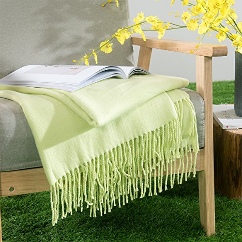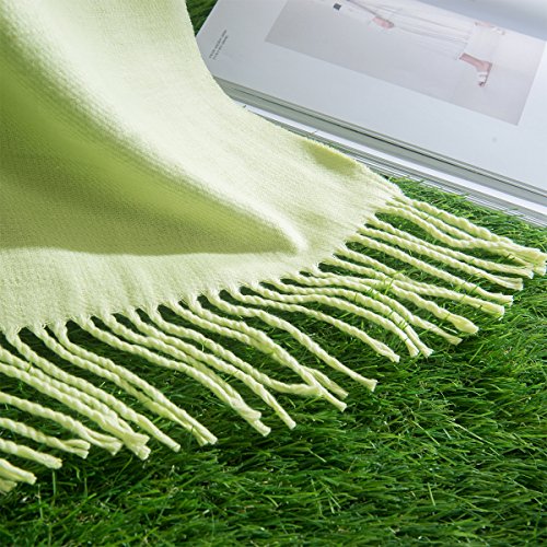 HollyHOME Throw Blanket Lemon Green 50x60 Luxury Soft Microfiber All Season Blanket with Tassels, ideal for Bed or Couch